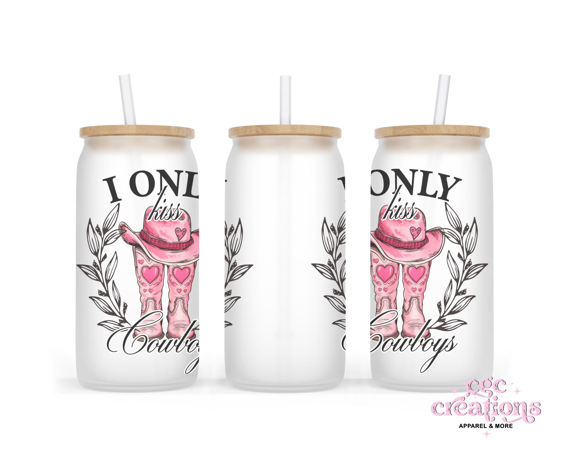 I Only Kiss Cowboys 16oz Glass Cup With Lid