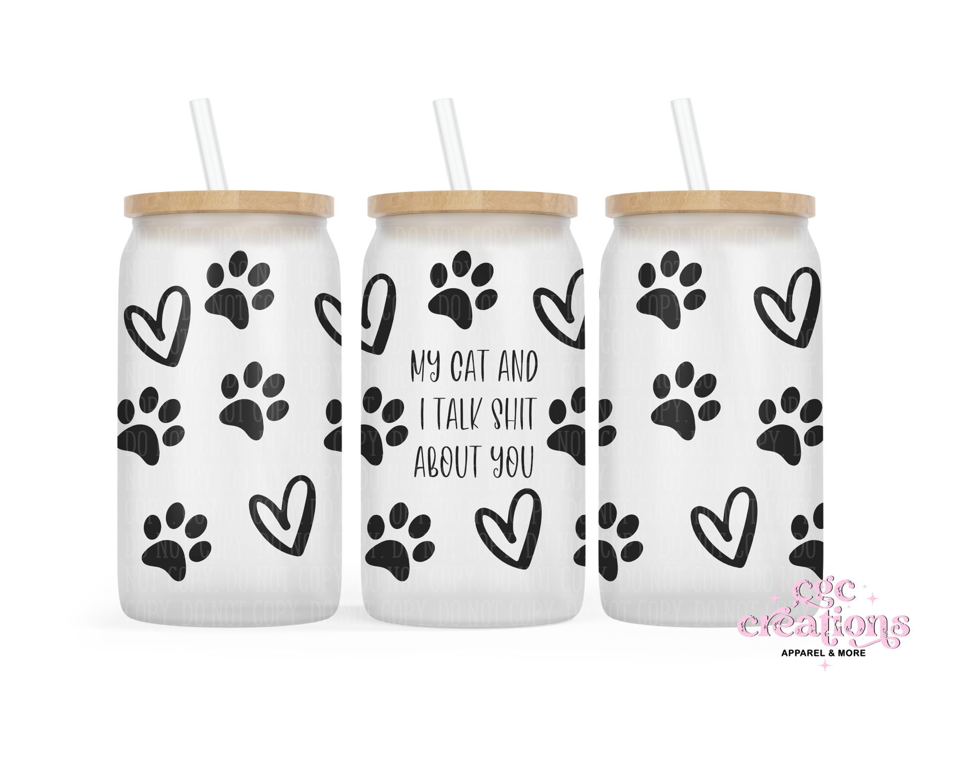 My Cat And I Talk Shit About You 16oz Glass Cup With Lid