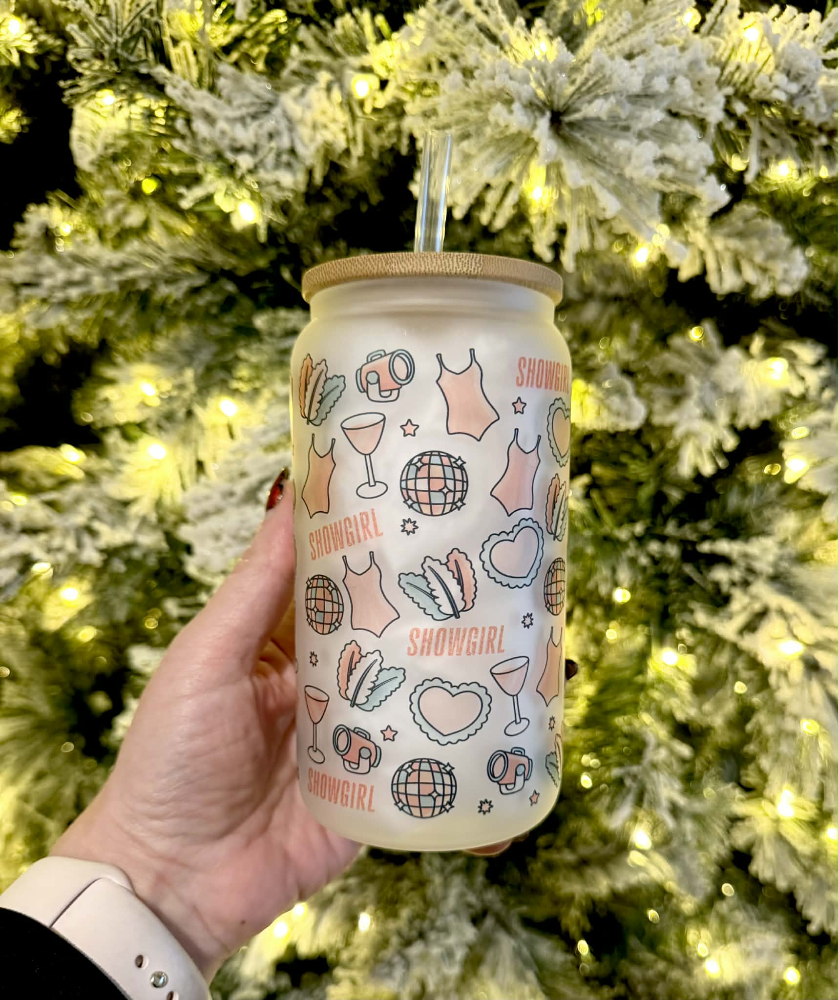 Showgirl - Frosted 16oz Glass Cup With Lid